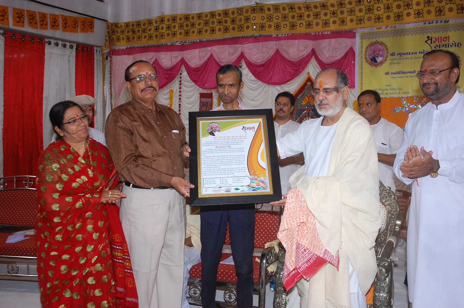 આ સન્માન સમારંભની એક વિશિષ્ટ ઘટના એટલે સરસ્વતી પુત્રોને આશીર્વાદ આપવા એક સંત પુરૂષની હાજરી. ભાગવત ભૂષણ પૂજ્ય ભાઇ (રમેશભાઇ ઓઝા) પોતાની કથા છેક ભાવનગર જિલ્લાના કોઇ ગામથી પૂરી કરીને તેમજ લાંબી મુસાફરીની અસુવિધા વેઠીને કાર્યક્રમમાં આવ્યા અને સમગ્ર ઘટનાની ગરિમા વધારી. આપણા આવા સંતો કથા કરવા ઉપરાંત અનેક સમાજ ઉપયોગી પ્રવૃત્તિઓ કાર્યક્ષમ રીતે કરે છે. ખરા અર્થમાં તેઓ લોકશિક્ષણનું કામ કરી સમાજ જીવનને વધારે વિચાર –સમૃધ્ધ બનાવે છે. પૂજ્ય ડોંગરેજી મહારાજની ઉજળી પરંપરા પૂજ્ય ભાઇએ વિશેષ રીતે દીપાવી છે. પૂજ્ય ભાઇએ ખૂબ રસ પડે તેવી શૈલીમાં મહત્વની વાતો હળવાશથી કરી તેમણે એ બાબતમાં સમાજનું ધ્યાન ફરી દોર્યું કે આપણા સૌના જીવનમાં શિક્ષકોનું સ્થાન એટલું મહત્વનું છે કે કાળના સુદીર્ઘ પ્રવાહમાં પણ શિક્ષકના યોગદાનને આપણે ભૂલી શકતા નથી. શાળા છોડ્યાને વર્ષો થયા હોય તો પણ જે શિક્ષકે પ્રાથમિક તથા માધ્યમિક શિક્ષણના સમયે આંગળી ઝાલીને વિદ્યાર્થીને જ્ઞાનપ્રાપ્તિના માર્ગે સ્નેહ અને કાળજીથી દોર્યા હોય તે લોકોના દિલમાં શિક્ષકની છબી માતાની છબીની જેમજ કાયમ રહે છે. પૂજ્ય ભાઇના આ શબ્દોમાં ગૂંથાયેલી લાગણી તથા સંદેશનું ભાથું શિક્ષણ જગતમાં કાર્યરત હોય તેવા સૌ માટે પ્રેરણાદાયક છે. બન્ને સન્માનિત મહાનુભાવોએ પણ શિક્ષણની તેમની સુદીર્ઘ યાત્રામાં થયેલા વિવિધ અનુભવોની વાત અંતરના ઉમળકાથી તેમજ ખૂબ લાગણીશીલ થઇને કરી હતી. બન્નેની શક્તિ શિક્ષણ ઉપરાંત લોકસાહિત્યના અભ્યાસ અને તેની ધારદાર રજૂઆતને કારણે પણ સમાજે પ્રમાણી છે તેમજ વધાવી છે. અભેસિંહભાઇના તો જીવનક્રમમાંજ સાહિત્ય સાધના અભિન્ન રીતે વણાયેલી છે. ભૂપતભાઇનું વલણ ભક્ત કવિ ઇસરદાસજી રચિત હરિરસ તરફ ઢળેલું છે અને તેના સ્વાધ્યાયમાં સક્રિય રીતે તેઓ જોડાયેલા છે. આથી આ પ્રવૃત્તિ આવનારા સમયમાં પણ વિશેષ પ્રમાણમાં થતી રહેશે તેવી ધારણા ચોક્કસ કરી શકાય. સદભાગ્ય હોય તેનું મન જ હરિરસ તરફ ઢળે. હરિરસના પાઠથી તેમજ તેની ભક્તિથી પરમ તત્વની ઉપાસના સહજ તથા સરળ બને છે. ભક્તકવિ ઇસરદાસજીના હરિરસમાં ગૂંથાયેલા શબ્દો તથા તેના ગુઢાર્થમાં જીવનના પાયાના તત્વો શોભે છે. હરિરસ તરફથી ગતિ એ નિશ્ચિત સર્વાધિક ઉન્નતિ તરફથી ગતિ છે.
